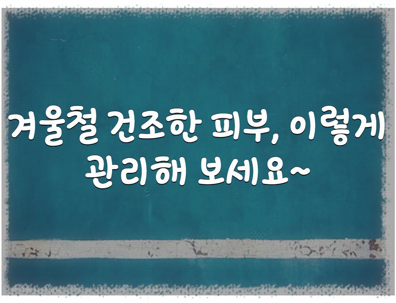 추운 겨울, 건조한 날씨 때문에 피부가 많이 거칠어지고 가렵나요? 오늘은 겨울철 건조한 피부를 촉촉하게 가꾸는 방법을 알려드릴게요. 자~ 그럼, 겨울철 건조한 피부, 이렇게 관리해 보세요~ 정리하여 드립니다.